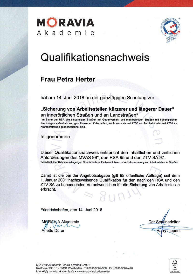 Bei Bedarf kümmern wir uns um die Genehmigung für die Straßensperrungen und die vorgeschriebene Beschilderung (RSA Nachweis vorhanden).